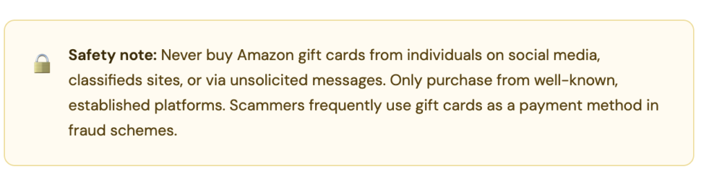 You can buy Amazon gift cards with PayPal on reputable third-party gift card platforms and certain online retailers that accept PayPal and carry digital gift cards. Always use established, verified sellers.